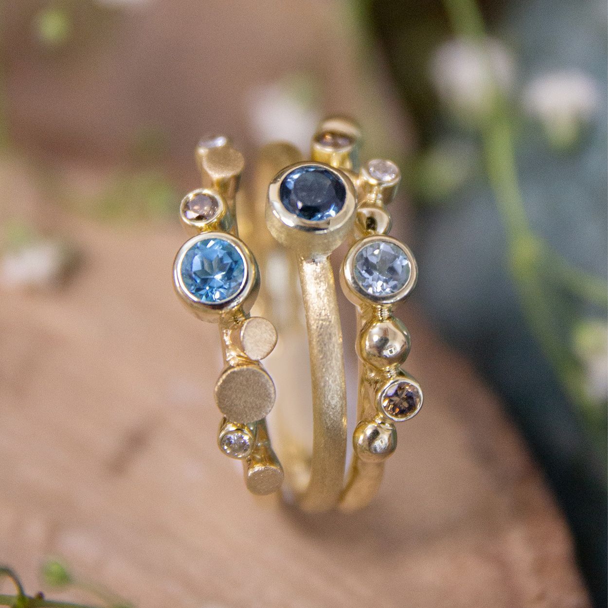 3 Gouden ringen met verschillende edelstenen