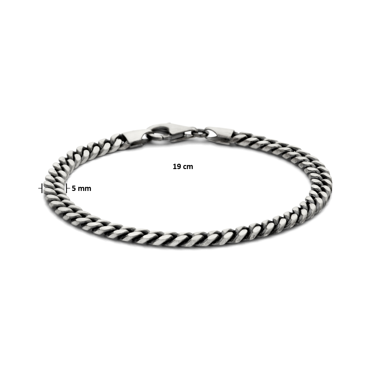 Geoxideerd 925 zilveren armband met een schakelbreedte van 5mm. Uitgevoerd met een karabijn sluiting.