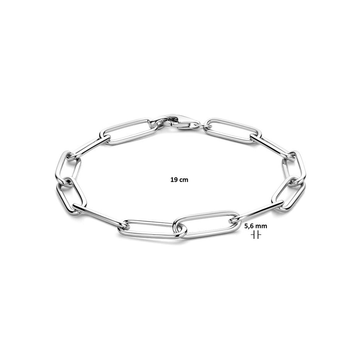 Gerhodineerd 925 zilveren armband uitgevoerd met een paperclip schakel (ronde buis) met een breedte van 5.6mm. De armband heeft een draaglengte van 19cm en een stevige karabijn sluiting.