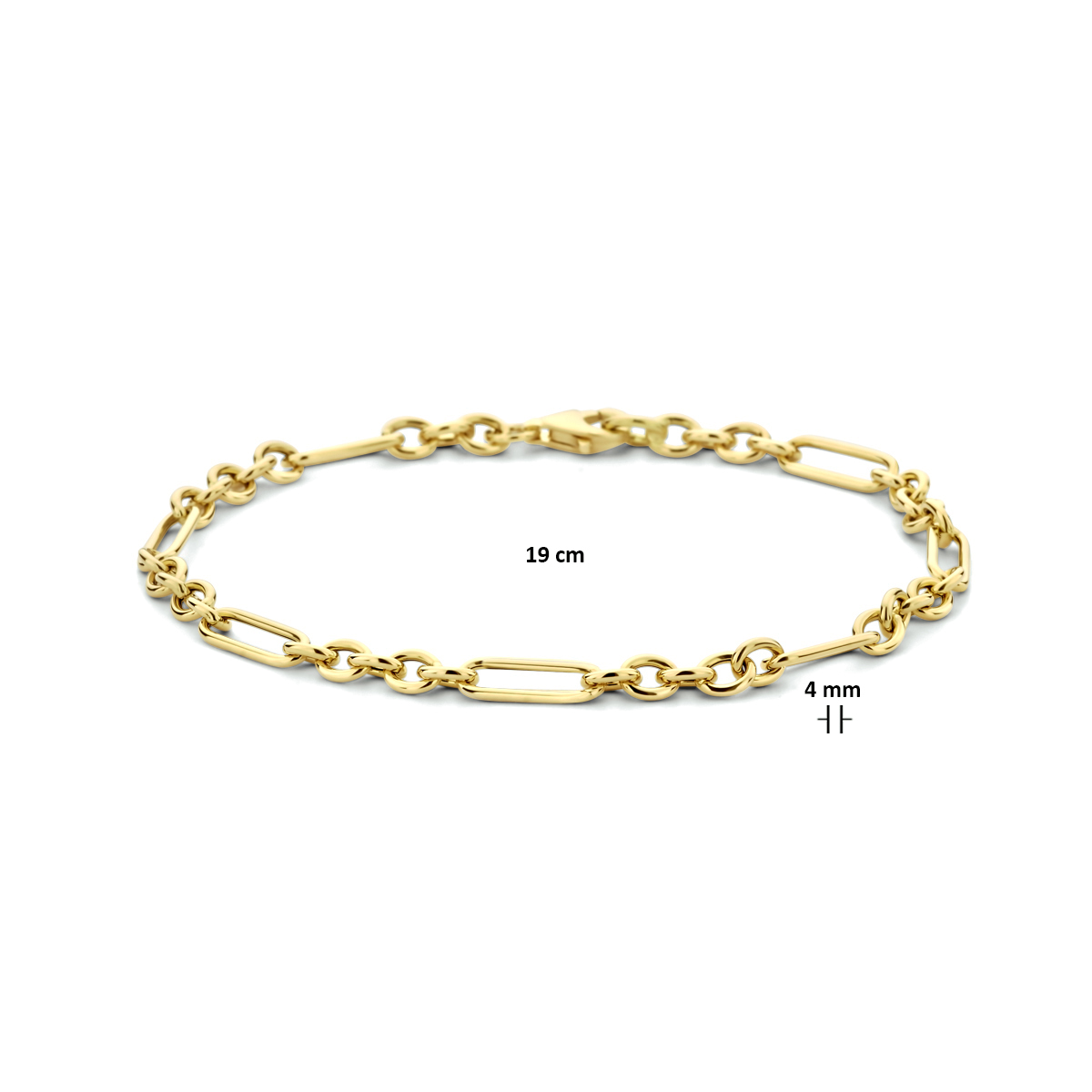 14k Geelgouden anker armband met een schakelbreedte van 4mm. De armband heeft een draaglengte van 19cm en een stevige karabijn sluiting.
