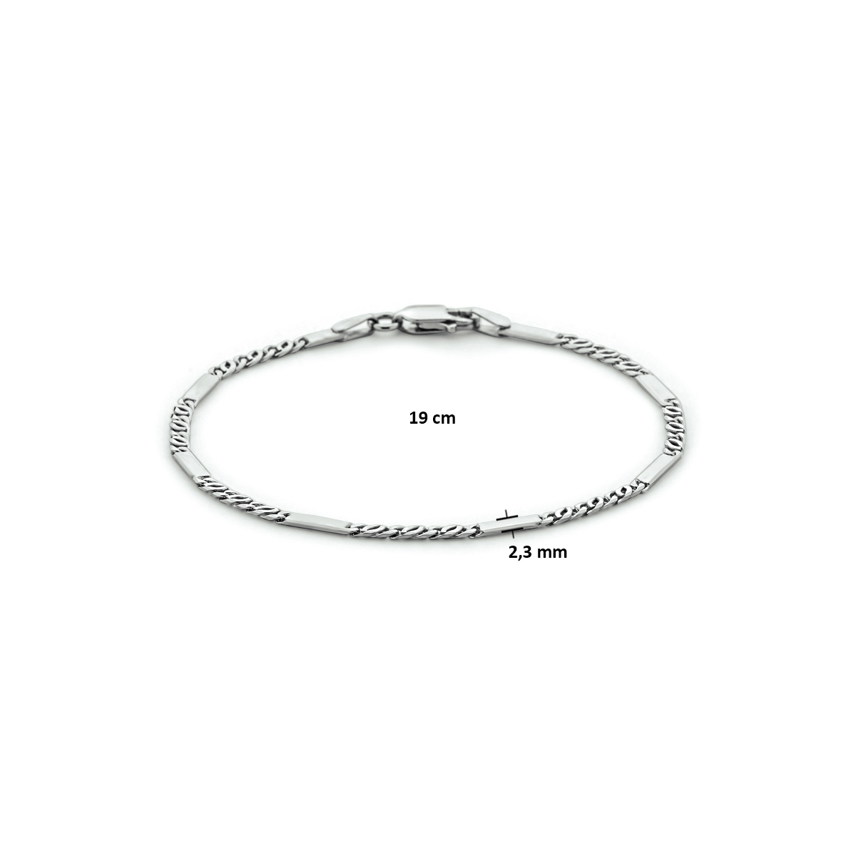 Gerhodineerd 925 zilveren armband uitgevoerd met een valkenoog- en tussenschakel. De armband heeft een breedte van 2.3mm en een stevige karabijn sluiting.