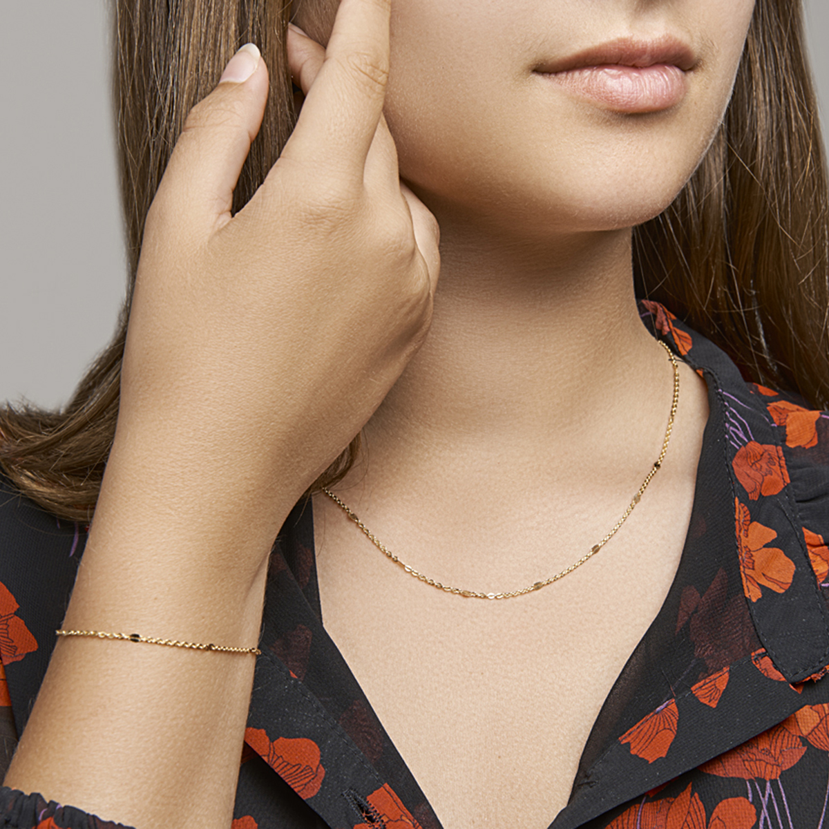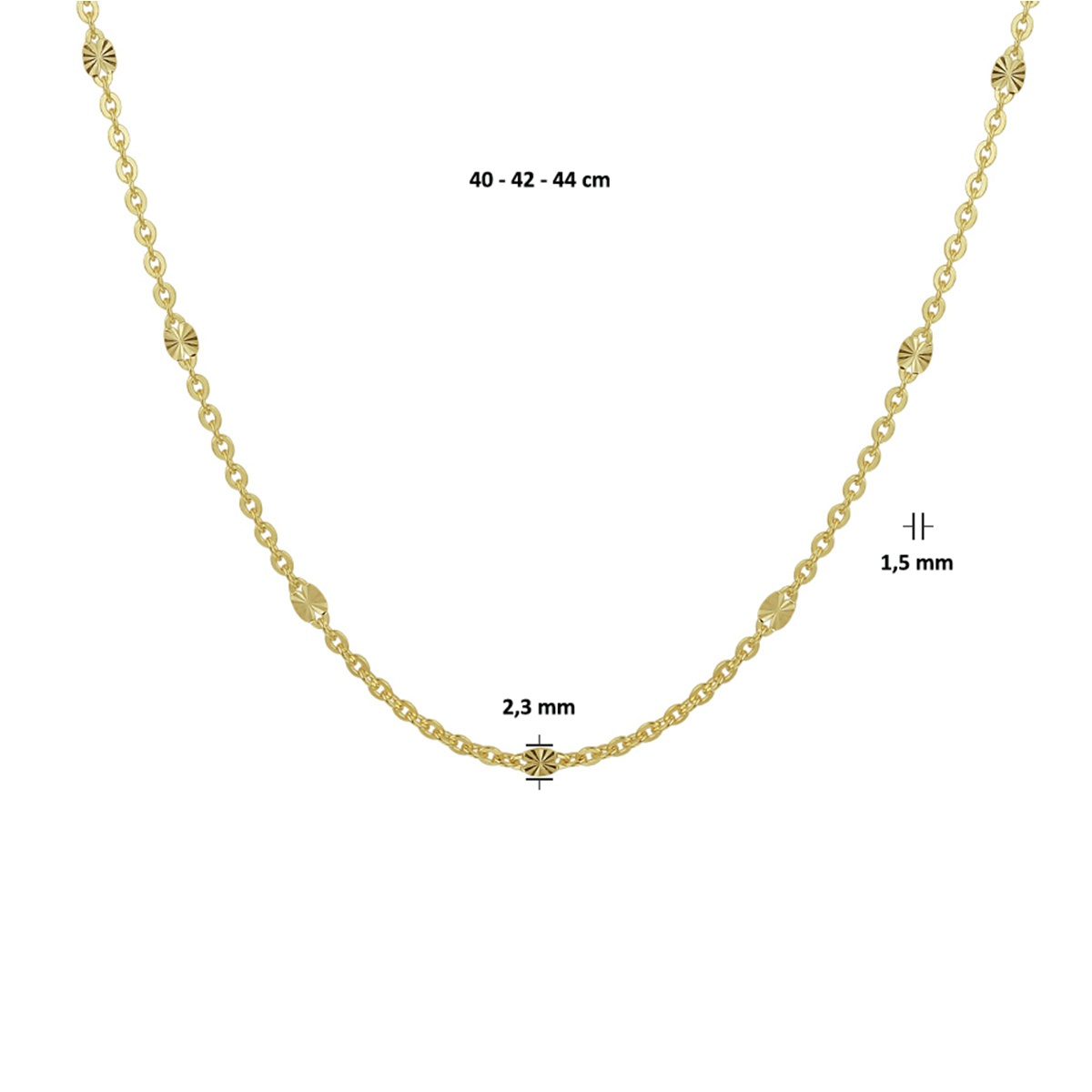 14k Geelgouden anker collier met een breedte van 2.3mm. Het collier heeft draaglengtes van 40, 42 en 44cm. De schakelbreedte is 1.5mm.