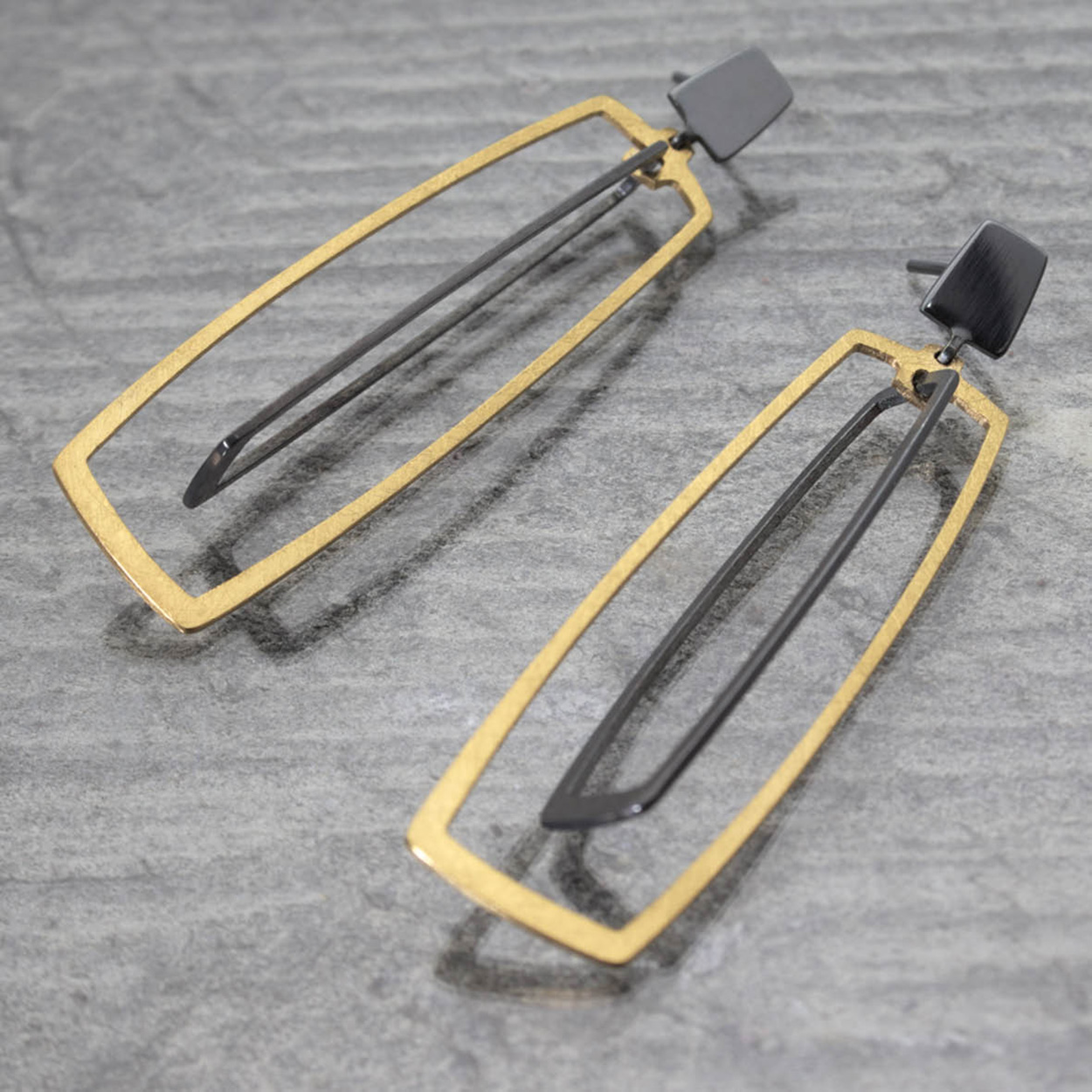 Oorbellen met geoxideerd zilver en verguld zilver.
