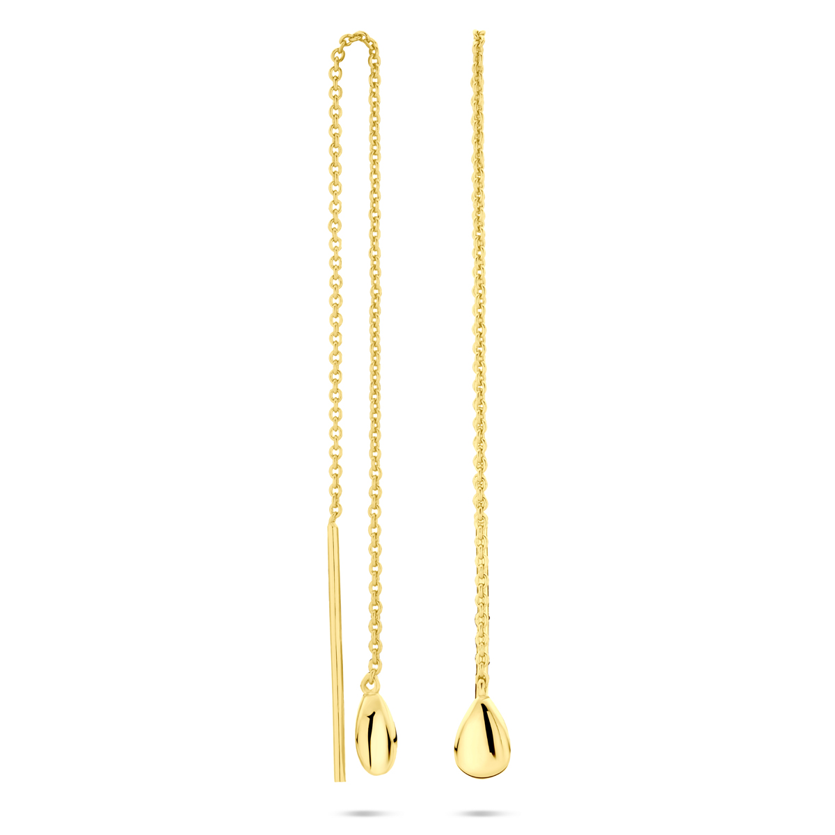 Verguld op 925 zilveren doortrekoorbellen uitgevoerd met een druppel van 8x4.5mm. Geen garantie op plating.