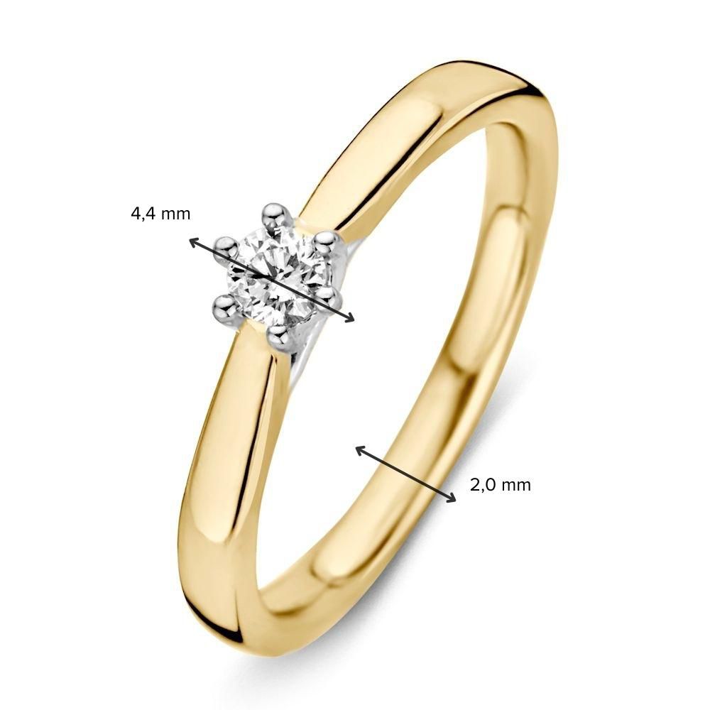 Een bicolor solitair ring met briljant geslepen diamant 0.14 crt.