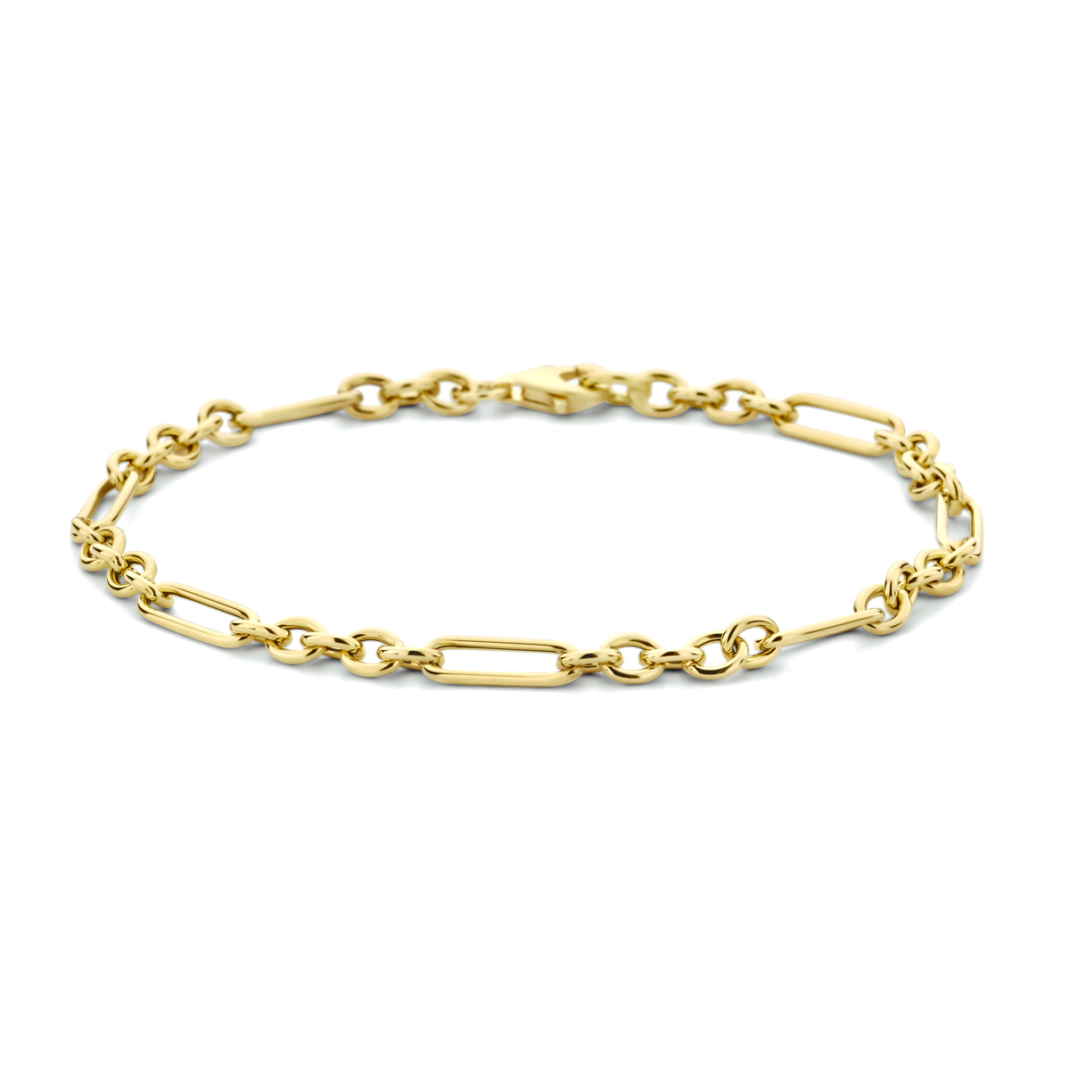14k Geelgouden anker armband met een schakelbreedte van 4mm. De armband heeft een draaglengte van 19cm en een stevige karabijn sluiting.