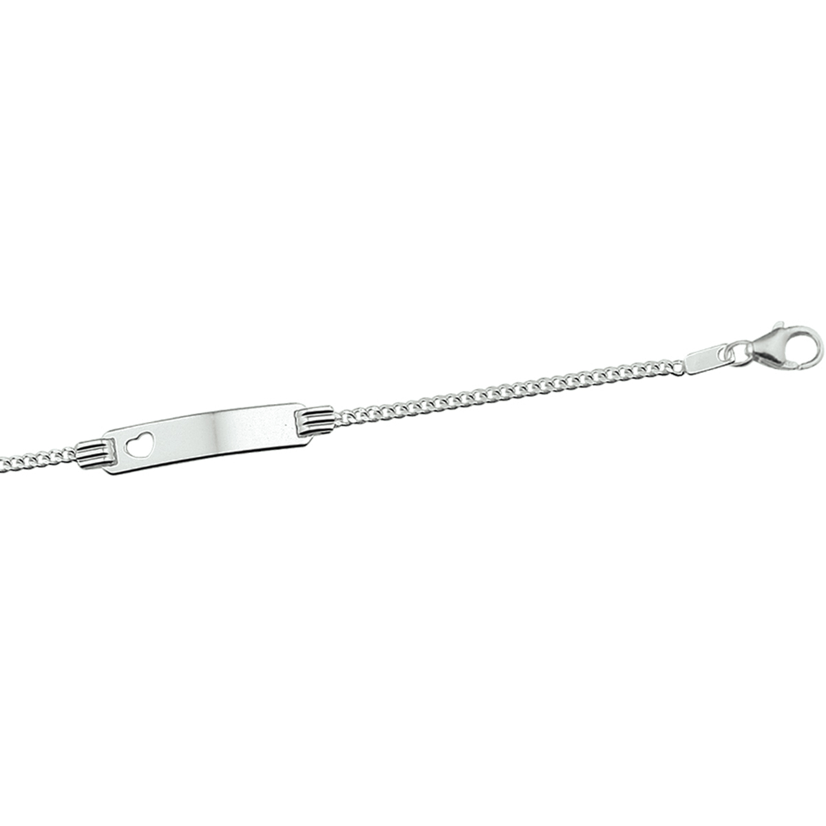 Zilver gerhodineerd graveerarmband met een uitgstanst hartje en gourmette schakel
