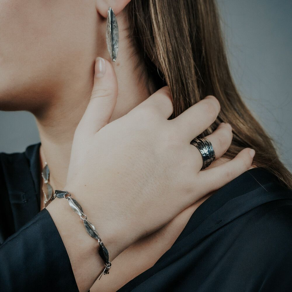 Een prachtige armband met gevouwen blaadjes. Gemaakt van 925 (geoxideerd) sterling zilver. Combineer deze armband met het bijpassende collier!