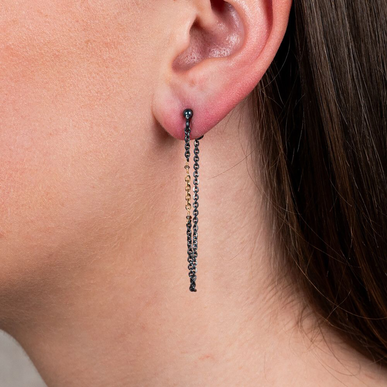Oorbellen gemaakt van geoxideerd zilver met 14 karaat goud en 2 bruine diamanten. Combineer met het bijpassende collier en de bijpassende armband voor een complete look!