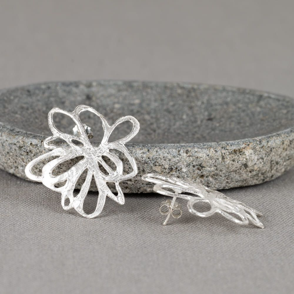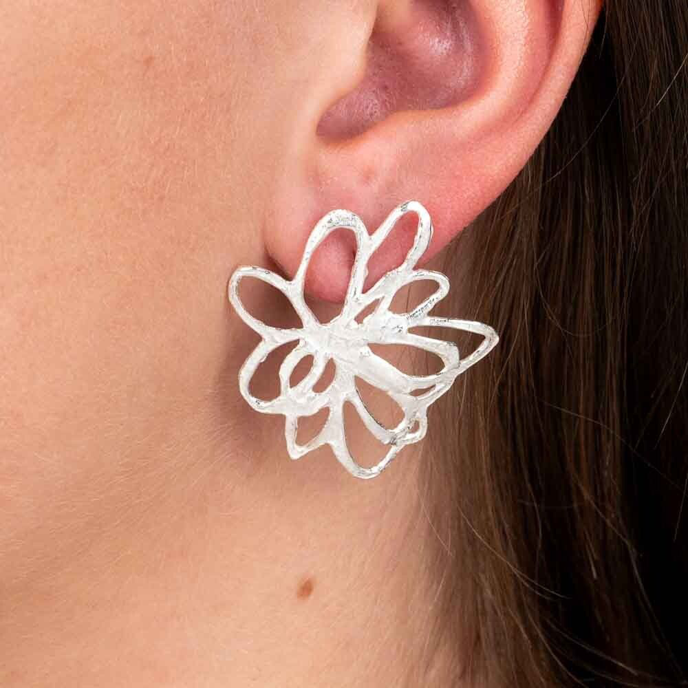 Oorstekers gemaakt van 925 sterling zilver in de vorm van een mooie, grote bloem.