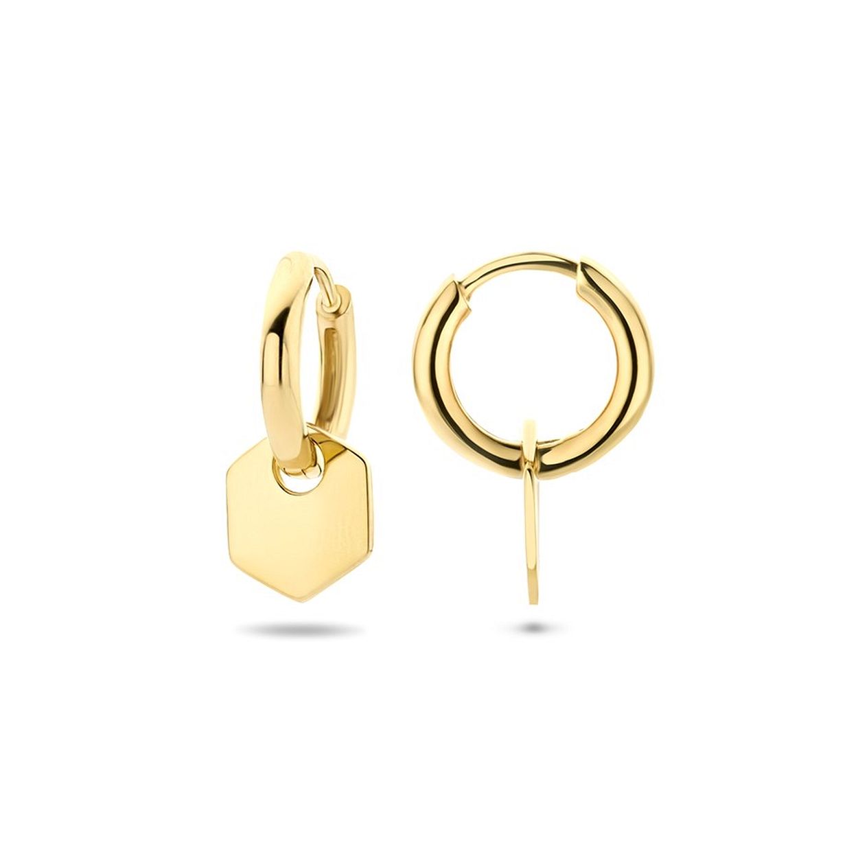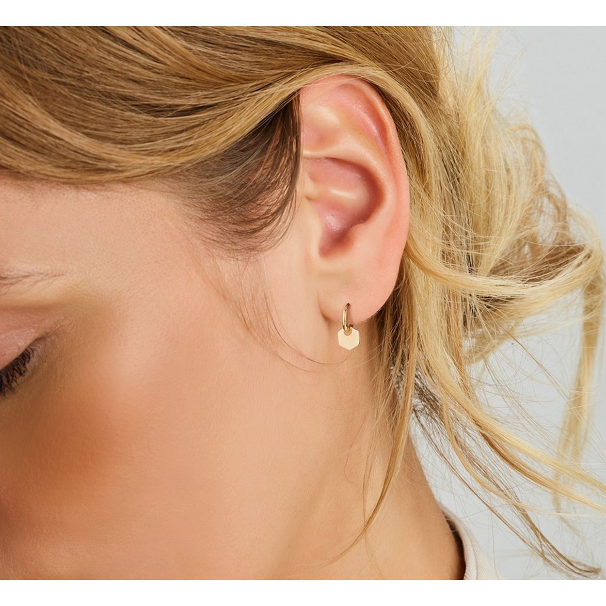 Geelgoud op 925 zilveren klapoorringen uitgevoerd met een hangertje in de vorm van een zeshoek.