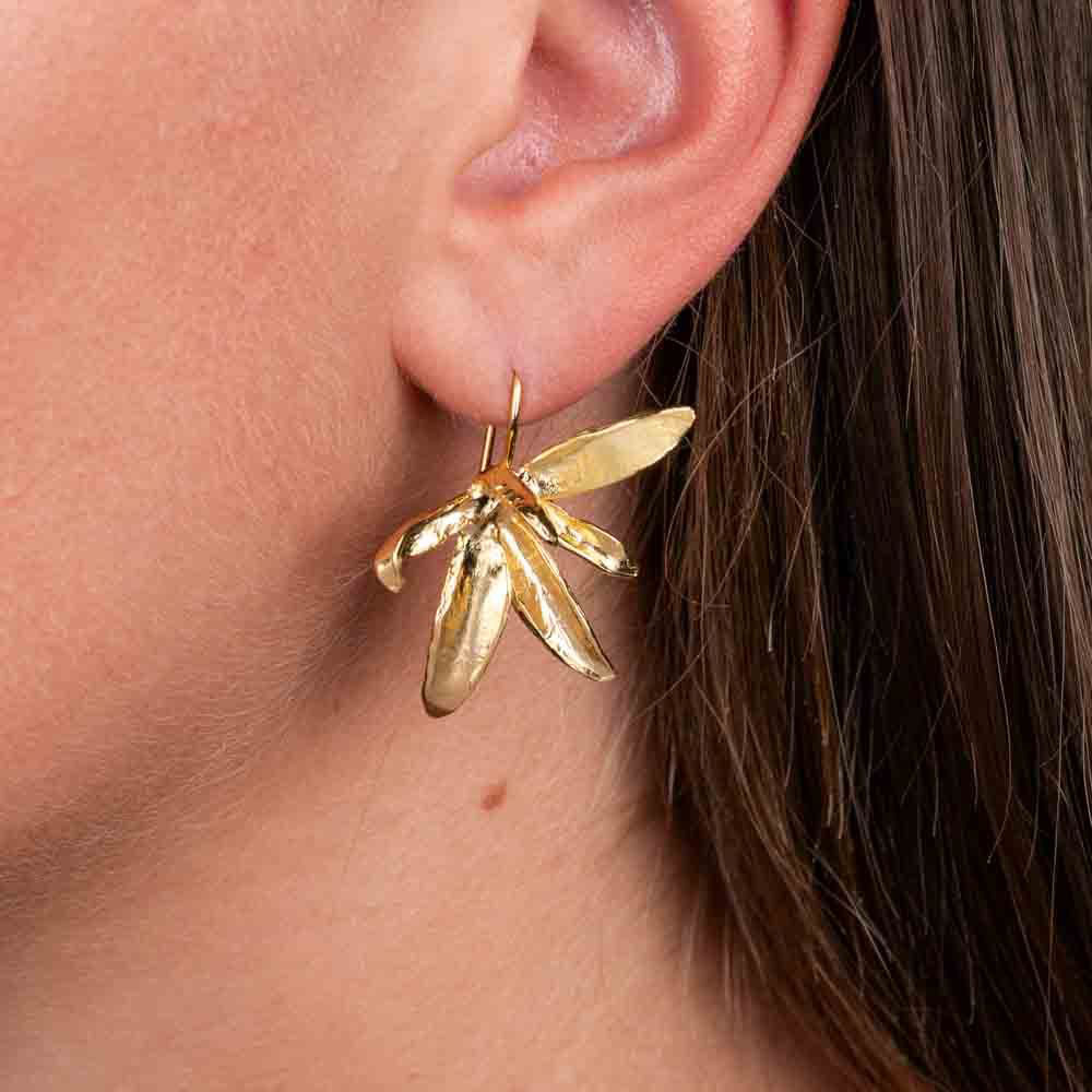 Prachtige oorhangers geïnspireerd op de orchidee. Deze oorhangers zijn gemaakt van verguld zilver.