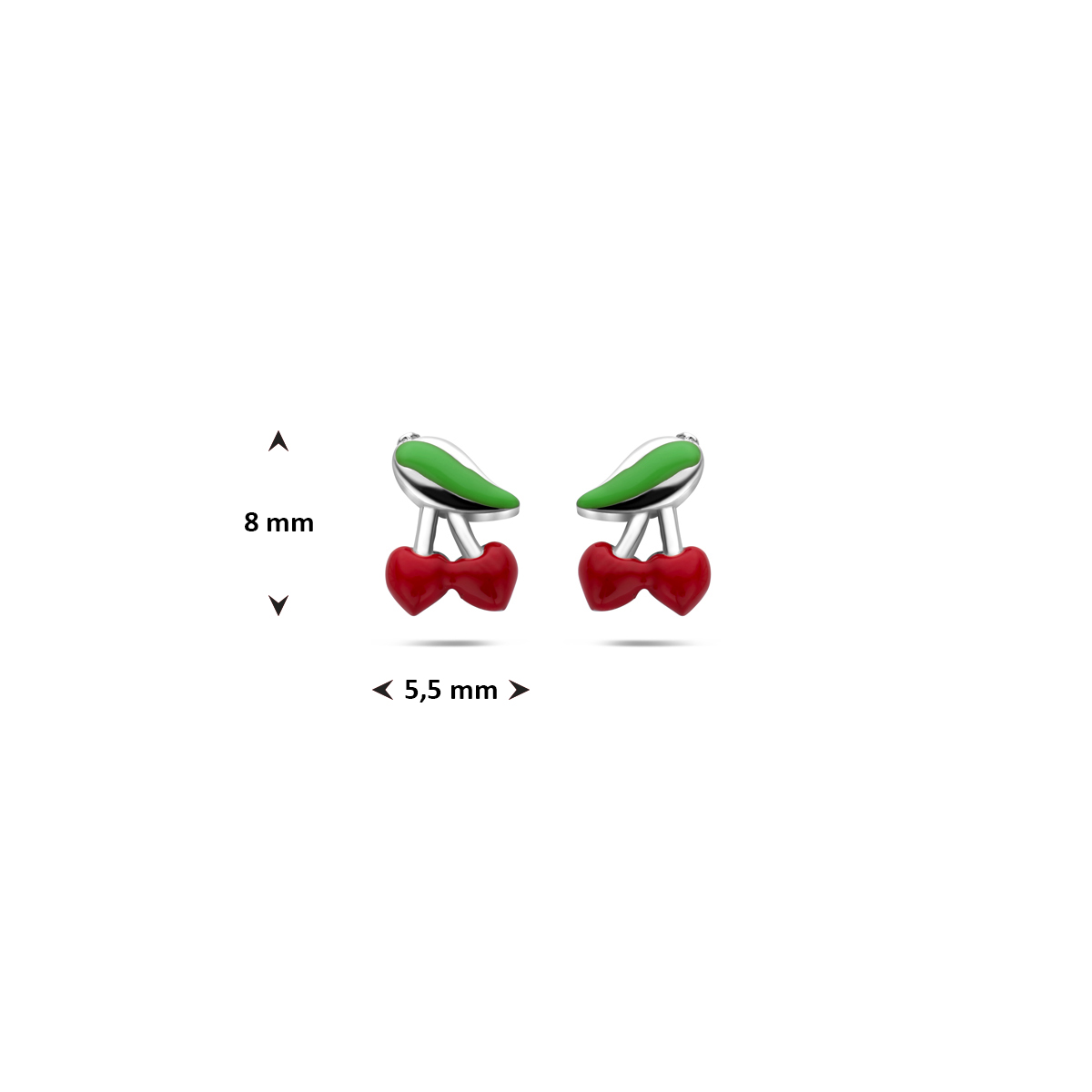 Gerhodineerd 925 zilveren oorknoppen uitgevoerd in de vorm van kersen. De oorknoppen hebben een afmeting van 8x5,5mm.
