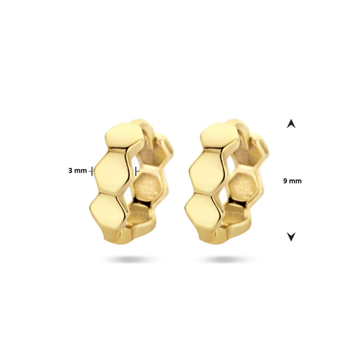 Geelgoud op 925 zilveren klapoorringen. De oorringen hebben een afmeting van 9x3mm. Geen garantie op de plating.