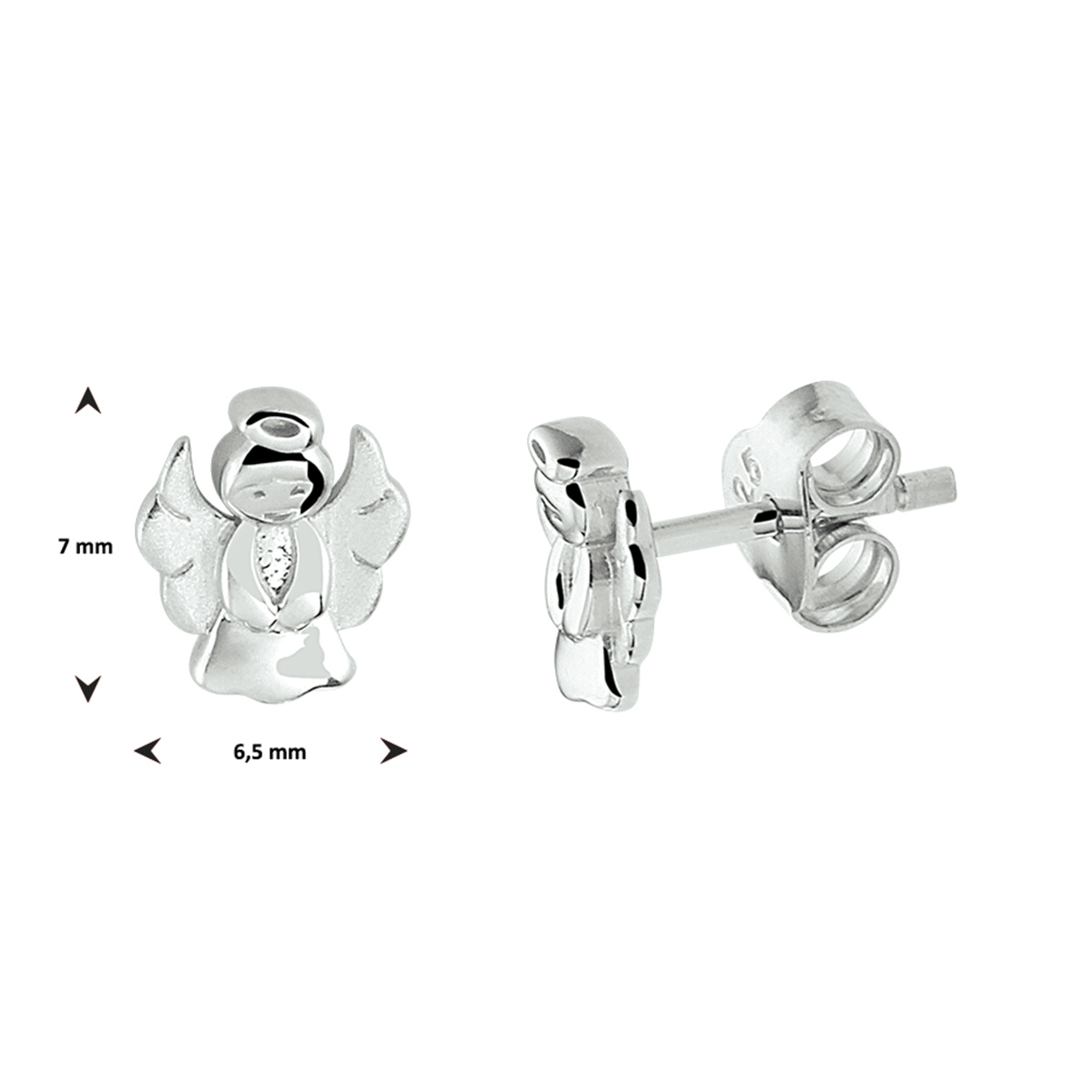 Gerhodineerd 925 zilveren oorknoppen in de vorm van een engel. De oorknoppen hebben een afmeting van 7x6.5mm.