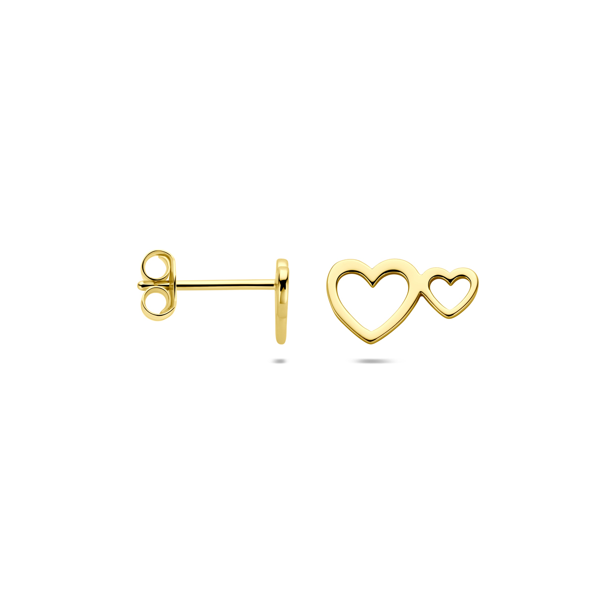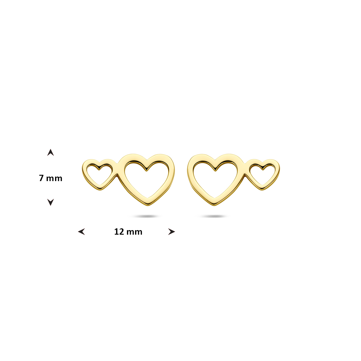 Verguld 925 zilveren oorknoppen (1 micron) uitgevoerd met hartjes. De oorknoppen hebben een afmeting van 7x12mm. Geen garantie op plating.