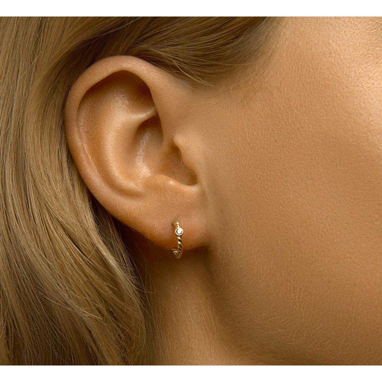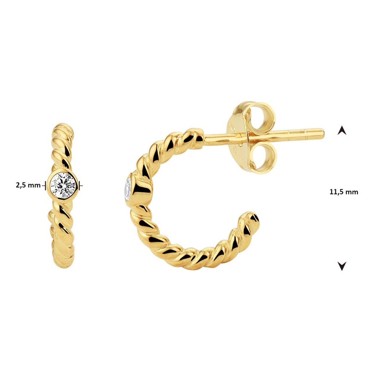 Geelgoud op 925 zilveren stekeroorringen uitgevoerd met een schitterende zirkonia. De oorstekers hebben een dikte van 2.5mm. Geen garantie op plating.