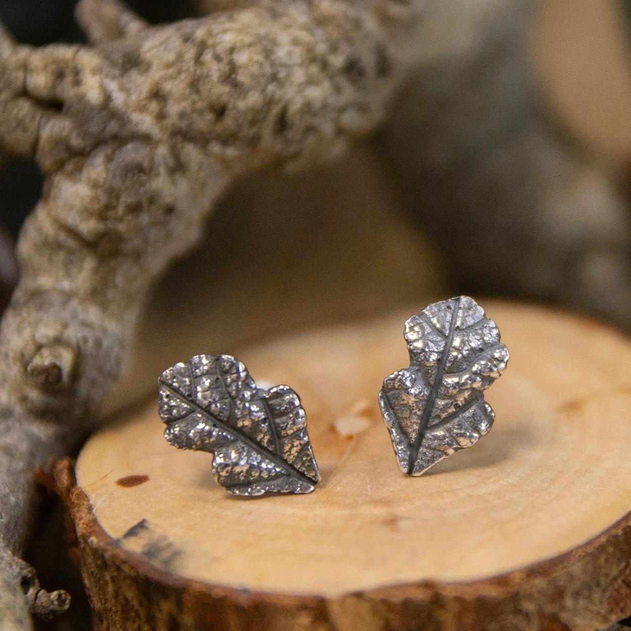Handmade geoxideerd zilveren oorstekers, geïnspireerd op de natuur. Deze oorsieraden zijn ontworpen en vervaardigd in ons atelier.