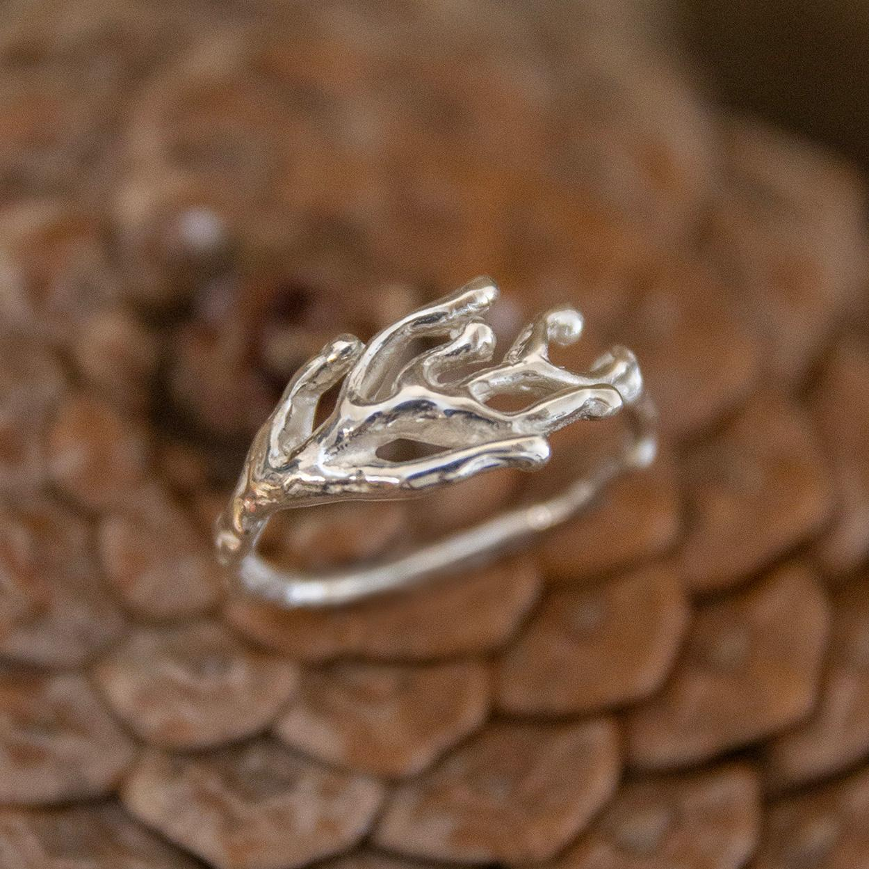 Handmade zilveren ring. Nature inspired. Handgemaakt in ons atelier. Deze ring is ook in het goud en geoxideerd zilver verkrijgbaar.