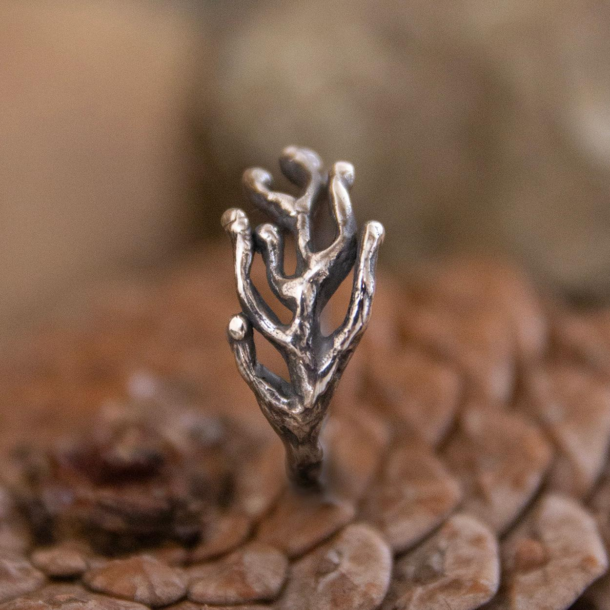 Handgemaakte geoxideerd zilveren ring in ons atelier. Geïnspireerd op de natuur. Deze ring is ook in het goud en licht zilver verkrijgbaar.