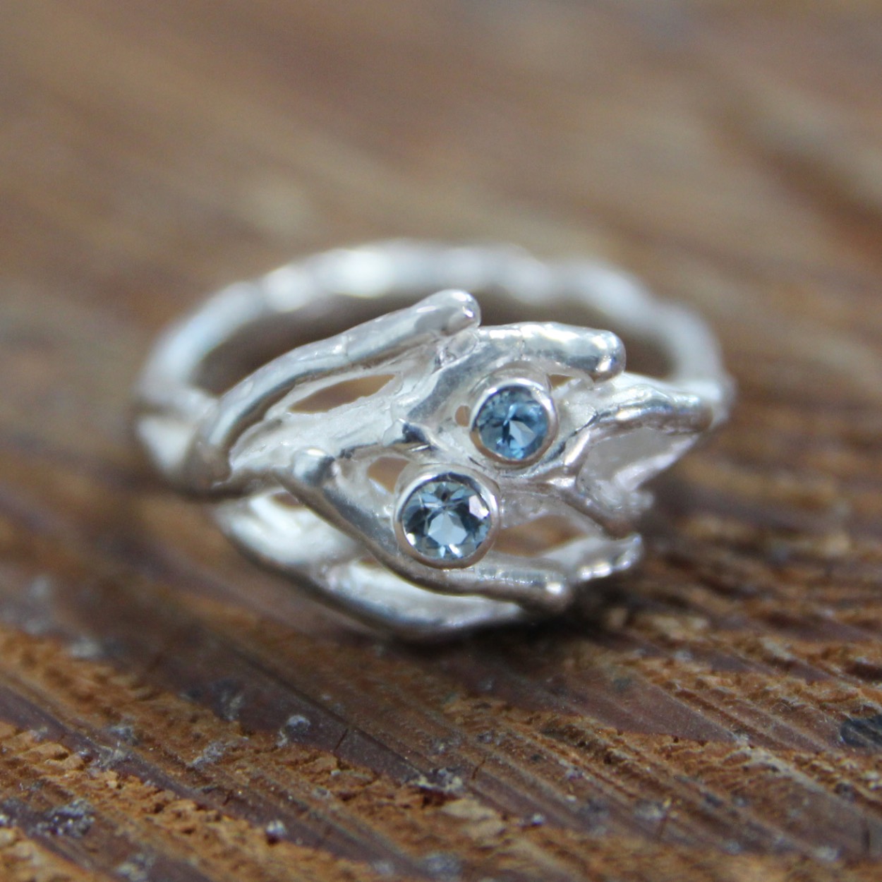 Zilveren ring met 2x topaas gemaakt in eigen atelier geïnspireerd op de mooie koralen uit de zee.