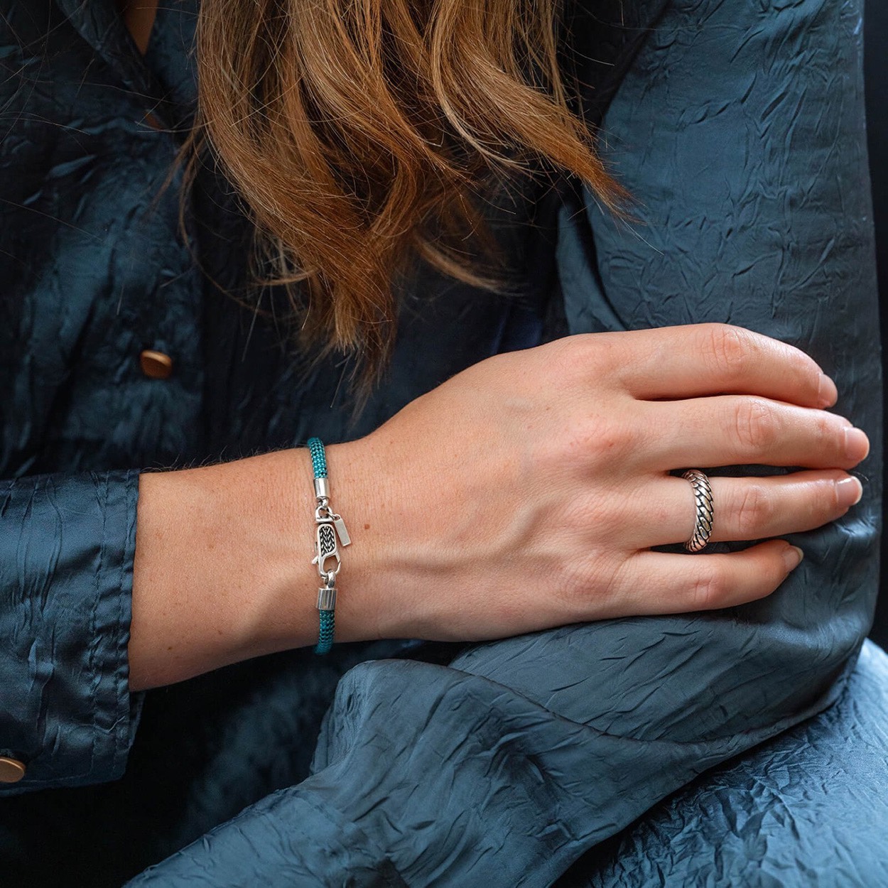 De nieuwste toevoeging aan de SILK collectie zijn de Azure, Emerald en Terra paracord armbanden, ontworpen met een luxe zilveren karabijnsluiting. Deze diepgekleurde armbandjes voegen stijl en kleur toe aan je arm en zijn verkrijgbaar in twee varianten: een met charm en een zonder charm.