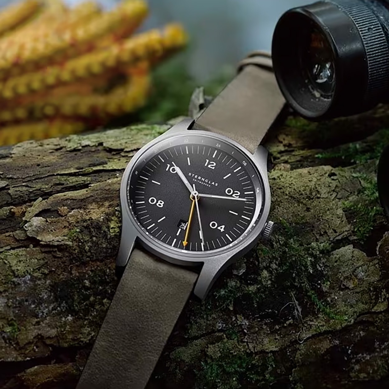 Sternglas presenteert zijn eerste horloge met een GMT functie. Met een toegevoegde tijdzone en goede leesbaarheid. Dankzij de grote indexen, biedt het Taiga horloge perfecte functionaliteit voor elke reiziger.